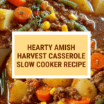 Amish Harvest Casserole is a comforting slow-cooked dish combining savory ground beef, fresh vegetables, and creamy mushroom soup, topped with melted cheddar cheese. This hearty casserole delivers homestyle flavors perfect for cozy family dinners.