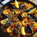 Store leftover paella in an airtight container in the refrigerator for up to 2 days. Reheat gently on the stovetop or in the oven with a splash of water or broth to keep the rice moist. Paella is best enjoyed fresh, as reheating can soften the prized crispy bottom.