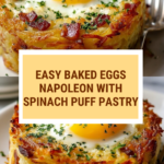 Baked Eggs Napoleon is a delicious and easy brunch recipe that combines flaky puff pastry with a creamy spinach and cheese filling, topped with perfectly baked eggs. This elegant dish is sure to impress and makes for a satisfying start to any weekend morning.