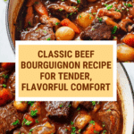 Keywords: Beef Bourguignon, French stew, braised beef, red wine stew, classic French recipe, comfort food, hearty beef stew