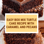 This indulgent Box Mix Turtle Cake combines the ease of a German chocolate cake mix with the rich flavors of caramel, chocolate chips, and pecans. Layered and baked to perfection, this cake is topped with creamy chocolate frosting, creating a deliciously gooey and nutty dessert that’s perfect for any occasion.