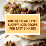 Cheesesteak Style Sloppy Joes combine the hearty flavors of classic sloppy joes with the savory, melty satisfaction of a cheesesteak sandwich. Ground beef is browned and simmered with sautéed onions and green peppers, enriched with beef broth and Worcestershire sauce, then thickened to a luscious sauce and topped with melted American or provolone cheese. Served hot on soft rolls, this comforting sandwich is perfect for a quick, delicious meal.