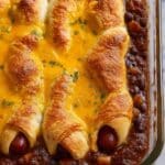 Keywords: chili cheese dog casserole, hot dog casserole, crescent roll hot dogs, cheesy chili casserole, easy family dinner