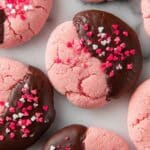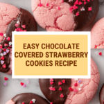 Delight in these festive Chocolate Covered Strawberry Cookies made with a moist strawberry cake mix base and finished with rich chocolate and colorful sprinkles. Perfectly soft and chewy with a hint of vanilla, these cookies are quick to prepare and ideal for Valentine’s Day or any special occasion.