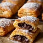 Delight in these easy-to-make Chocolate Puff Pastries featuring flaky puff pastry rolled around rich semisweet chocolate chips, baked to golden perfection and dusted with powdered sugar for a sweet finish.