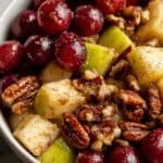 A vibrant and refreshing Cinnamon Apple Grape Salad combining the natural sweetness of apples and grapes with the warmth of cinnamon and the crunch of toasted pecans. This easy-to-make fruit salad is tossed in a honey-cinnamon dressing that adds a delightful depth of flavor, perfect for a light snack, side dish, or healthy dessert.