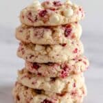Keywords: raspberry cheesecake cookies, vanilla cake mix cookies, white chocolate chips cookies, freeze-dried raspberry cookies, creamy cheesecake cookies