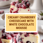 Keywords: cranberry cheesecake, white chocolate mousse, holiday dessert, creamy cheesecake, graham cracker crust, sugared cranberries, festive desserts