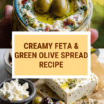 This creamy feta and green olive spread is a flavorful Mediterranean-inspired appetizer, blending tangy feta, briny green olives, and zesty lemon for a smooth yet textured dip perfect for serving with pita chips, crostini, or fresh vegetables.
