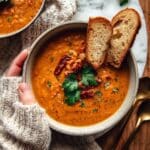 This Creamy Lentil Sun-dried Tomato Soup is a comforting and flavorful dish combining tender lentils, tangy sun-dried tomatoes, and rich creaminess from parmesan and cream. Perfectly seasoned with Italian herbs and a hint of chili flakes, it’s a hearty soup that’s easy to prepare on the stovetop and ideal for cozy meals.