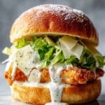 This Crispy Chicken Caesar Sandwich combines flavorful breaded chicken with classic Caesar salad ingredients for a satisfying and crunchy meal. Featuring a golden, crispy chicken breast layered with fresh romaine, ripe tomatoes, parmesan cheese, and creamy Caesar dressing on toasted brioche or ciabatta buns, this sandwich is perfect for lunch or a casual dinner.