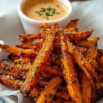 Enjoy perfectly crispy oven-baked sweet potato fries made with simple ingredients and a few tricks to ensure maximum crispiness without frying. These flavorful fries are seasoned with garlic powder, paprika, salt, and pepper, then baked to golden perfection for a healthier alternative to traditional fried fries.