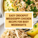 Crockpot Mississippi Chicken is a flavorful, effortless dish perfect for busy days. Tender chicken breasts are slow-cooked with savory ranch and gravy mixes, buttery richness, and tangy pepperoncini peppers for a mouthwatering meal.