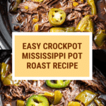 A comforting and flavorful crockpot recipe featuring tender chuck roast slow-cooked with ranch dressing mix, au jus gravy mix, pepperoncini peppers, and butter for a rich and tangy Mississippi Pot Roast that’s perfect for an easy, hands-off dinner.