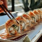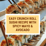 Crunch Roll Sushi is a delightful combination of creamy avocado, fresh cucumber, and flavorful imitation crab, all wrapped in sticky sushi rice and nori. The spicy mayo and crunchy toppings add texture and a kick of flavor, making this roll a favorite for sushi lovers at home.