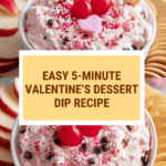 This easy 5-minute dessert dip is a sweet and colorful treat that’s perfect for any occasion. Creamy, chocolatey, and festive with Valentine sprinkles, it’s ideal for dipping fruits, pretzels, or cookies.