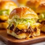 These Easy Big Mac Sliders are a fun and delicious party treat that captures the iconic flavors of a classic Big Mac in a bite-sized slider. Made with ground beef, a homemade Big Mac-style sauce, melty American cheese, pickles, and shredded lettuce on soft slider buns, these sliders are perfect for entertaining or casual gatherings. The sliders are baked until the cheese melts, then topped with toasted, buttery sesame seed buns for a delightful texture and flavor.