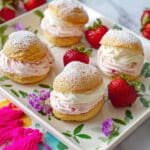 This Easy Strawberry Cream Puffs recipe offers a delightful combination of light, airy choux pastry shells filled with a luscious strawberry whipped cream filling. Perfect for any occasion, these cream puffs deliver a balance of creamy, sweet, and fruity flavors with a crisp exterior and smooth inside, garnished with fresh strawberries and dusted powdered sugar for an elegant finish.