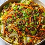 Keywords: egg roll in a bowl, easy dinner, Asian ground beef skillet, low carb, healthy dinner, quick skillet meal