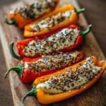 Everything Bagel Cream Cheese Stuffed Mini Peppers are a delightful and easy appetizer perfect for any gathering. The crunchy, sweet peppers paired with a creamy, tangy filling and a savory everything bagel seasoning make for a flavorful bite-sized treat.