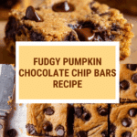These fudgy pumpkin chocolate chip bars combine the rich flavors of pumpkin and warming spices with luscious melted butter and two types of chocolate chips for an irresistibly moist and tender treat. Perfect for fall or anytime you want a decadent pumpkin dessert, they bake up quickly and easily, featuring a soft, chewy texture reminiscent of brownies with the seasonal twist of pumpkin and spice.