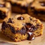 These fudgy pumpkin chocolate chip bars combine the rich flavors of pumpkin and warming spices with luscious melted butter and two types of chocolate chips for an irresistibly moist and tender treat. Perfect for fall or anytime you want a decadent pumpkin dessert, they bake up quickly and easily, featuring a soft, chewy texture reminiscent of brownies with the seasonal twist of pumpkin and spice.
