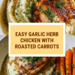 Keywords: Garlic herb chicken, baked chicken breasts, roasted carrots, easy chicken dinner, healthy chicken recipe, one-pan meal