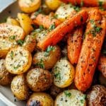 Keywords: roasted vegetables, garlic herb roasted, roasted potatoes, healthy side dish, oven roasted veggies