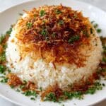 This Garlic Parmesan Rice recipe features fluffy, fragrant long-grain rice cooked in savory chicken broth with aromatic garlic, creamy parmesan cheese, and fresh parsley. It’s a quick and comforting side dish that complements a variety of main courses.