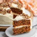 Store the carrot cake covered in the refrigerator for up to 4 days. Let it come to room temperature before serving for the best flavor and texture. Leftover cake can also be frozen for up to 2 months; thaw overnight in the refrigerator and frost after thawing if preferred.
