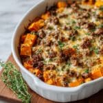 This Ground Turkey Sweet Potato Bake is a wholesome, flavorful dish that combines lean protein with tender sweet potatoes and vibrant vegetables. It’s an easy, comforting meal perfect for weeknight dinners or meal prep. The melty mozzarella cheese on top adds a delicious finishing touch.