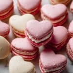 Keywords: macarons, heart-shaped macarons, French dessert, almond meringue, buttercream filling, romantic dessert, Valentine treats