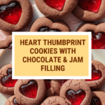These Heart Thumbprint Cookies are a delightful twist on a classic treat, perfect for sharing with loved ones. Rich cocoa dough frames a sweet jam center shaped like a heart, making each bite both charming and delicious.