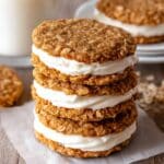 Homemade Oatmeal Cream Pies are soft, chewy oatmeal cookies sandwiched with a rich, creamy vanilla frosting. These classic treats combine the warmth of cinnamon and molasses in the cookies with a smooth cream cheese frosting for a nostalgic dessert that’s perfect for sharing or enjoying as a cozy snack.
