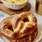 Store leftover pretzels in an airtight container at room temperature for up to 2 days. To refresh, warm them in the oven at 350°F for 5-7 minutes. The cheese sauce keeps well in the refrigerator for up to 3 days; reheat gently on the stove to avoid separating.