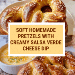 This easy homemade soft pretzels recipe guides you through making delicious, chewy pretzels from scratch, complete with a flavorful salsa verde cheese dipping sauce. Perfectly soft on the inside with a golden-brown crust, these pretzels are an ideal snack or appetizer for any occasion.