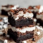 Store the brownies in an airtight container at room temperature for up to 3 days. For longer storage, refrigerate them for up to a week. When refrigerated, allow the brownies to come to room temperature before serving for the best texture. Reheat gently if desired, but be cautious not to melt the marshmallow frosting.