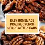 This Irresistible Praline Crunch recipe combines rich, buttery pecans coated in a sweet caramelized sugar mixture, enhanced with vanilla and a hint of cinnamon. Perfect as a snack or a topping for desserts, these pralines offer a crunchy texture and an addictive sweet-nutty flavor.