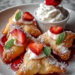 Discover the joy of combining creamy cheesecake and sweet strawberries in a fun, crispy bite. These deep-fried strawberry cheesecakes are perfectly golden on the outside and lusciously smooth inside, making them an irresistible treat for any occasion.