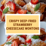 Keywords: strawberry cheesecake, deep-fried dessert, crispy cheesecake wontons, strawberry dessert, fried cheesecake bites