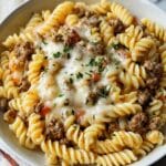 Keywords: cheeseburger pasta, Alfredo pasta, ground beef pasta, creamy pasta recipe, loaded pasta dish