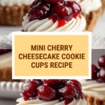 Mini Cherry Cheesecake Cookie Cups are a delightful bite-sized treat combining buttery cookies with a smooth cheesecake filling and a burst of cherry on top. These charming desserts are perfect for parties or a sweet snack any time.