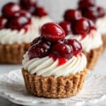 Keywords: mini cherry cheesecake cookie cups, cherry cheesecake cookies, mini cheesecake desserts, cookie cups recipe, fruit topped cookie desserts