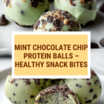 Delicious and nutritious Mint Chocolate Chip Protein Balls made with almond butter, rolled oats, and vanilla protein powder. These no-bake treats are perfect for a quick snack or post-workout boost, combining refreshing peppermint flavor with rich dark chocolate chips for a satisfying and healthy energy bite.