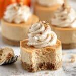 Keywords: pumpkin cheesecake, no bake dessert, mini cheesecakes, fall dessert, pumpkin puree, easy cheesecake, graham cracker crust