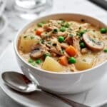 - For a vegetarian version, substitute the chicken with chickpeas or extra mushrooms and use vegetable broth instead of chicken stock.