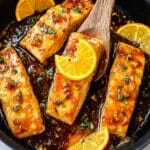 Keywords: orange glazed salmon, quick salmon recipe, honey soy salmon, stovetop salmon, healthy salmon glaze
