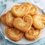 Store palmier cookies in an airtight container at room temperature for up to 3 days to keep them crisp. If they soften, you can refresh them by baking at 350℉ (175℃) for 3–5 minutes. Avoid refrigerating, as this can make them soggy.