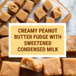 Keywords: peanut butter fudge, easy fudge recipe, no bake fudge, sweetened condensed milk fudge, creamy peanut butter dessert, homemade fudge