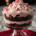 This Peppermint Brownie Trifle is a festive layered dessert perfect for the holidays, combining rich chocolate brownies with a creamy peppermint cheesecake layer, Cool Whip, and crunchy peppermint baking chips. It’s easy to prepare and perfect for sharing at gatherings or as a sweet treat to celebrate the season.